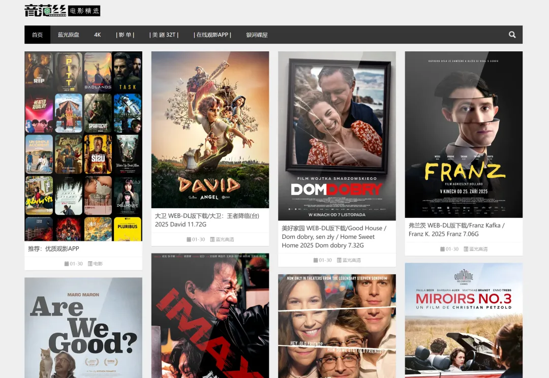 如果你是追求“每一帧都能当壁纸”的画质党,音范丝绝对是Top1推荐!这个网站在影迷圈口碑封神,主打一个“少而精”,不堆砌低质资源,每部影片都经过严格筛选,豆瓣、IMDb高分佳作一抓一大把。