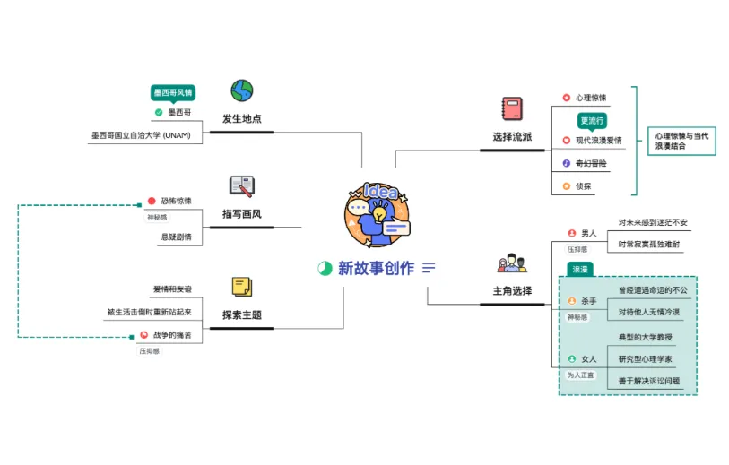 XMind 2026的思维工具箱堪称强大。联系功能允许你将两个相关的想法紧密联系起来,用不同的形状和颜色表达特定含义。概要功能则为选中的主题提供总结或概要信息,方便你随时调整样式或添加子主题。外框功能能强调特定内容或概念,多种样式任你选择。标记功能则让日程规划、项目管理变得更加简单直观。笔记功能则保持了思维导图的简洁性,额外的文本信息或链接都可以放入可扩展的笔记中随时查看。