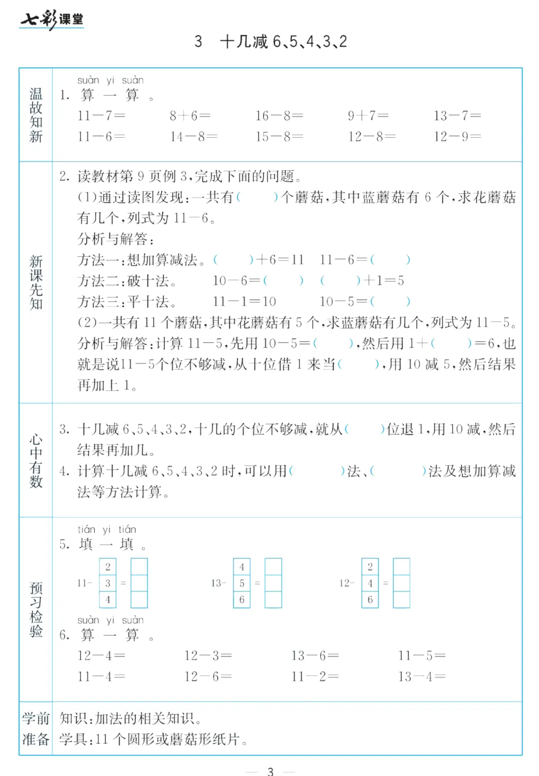 人教版小学数学《预习卡》1-6年级(网盘下载)全版本通用,(人教版)(北师大)(苏教版)(冀教版)(西师大)(北京版)(青岛版)