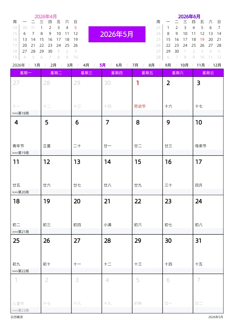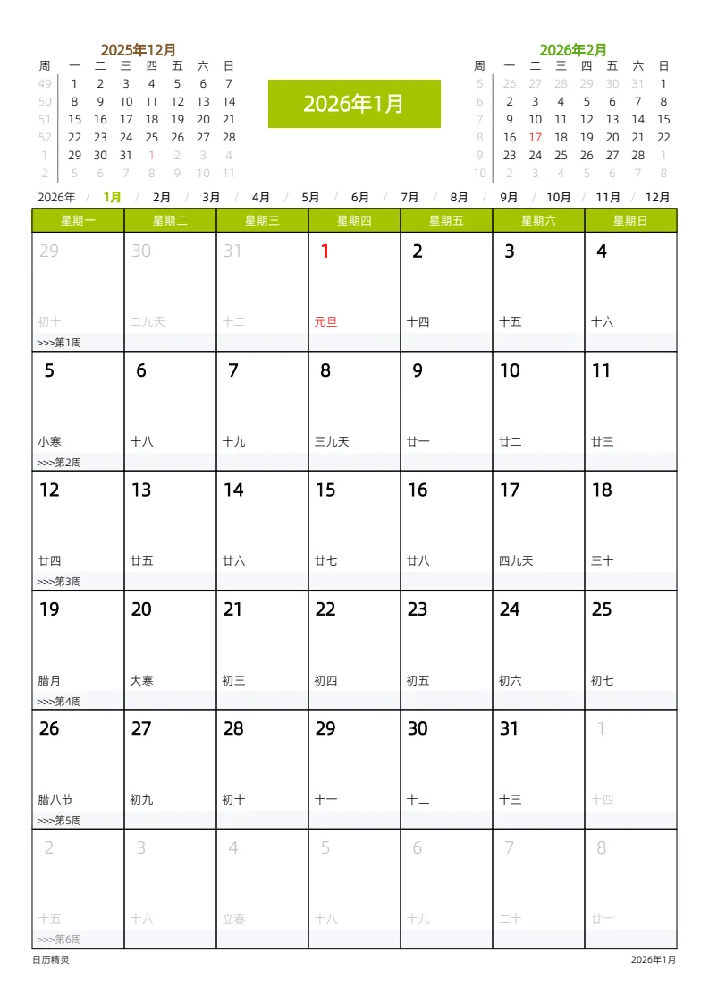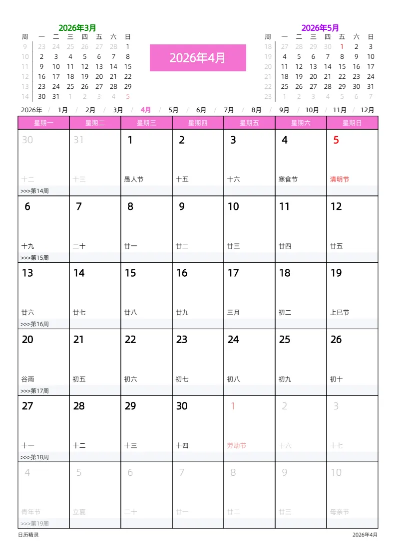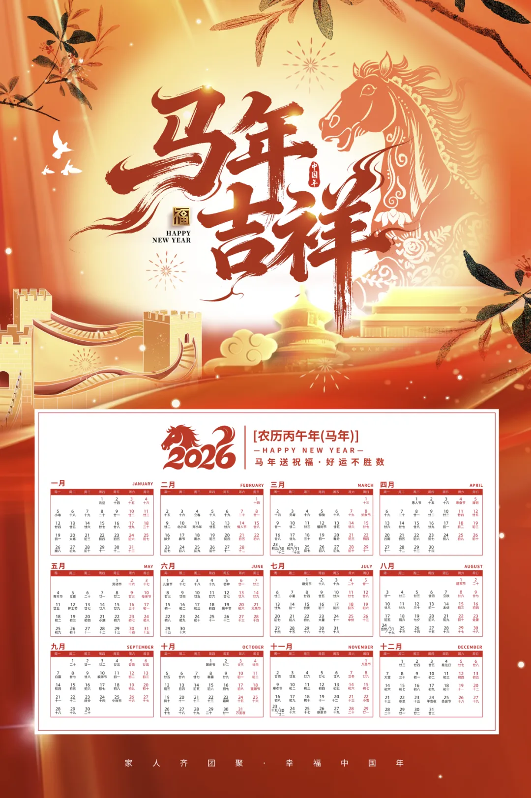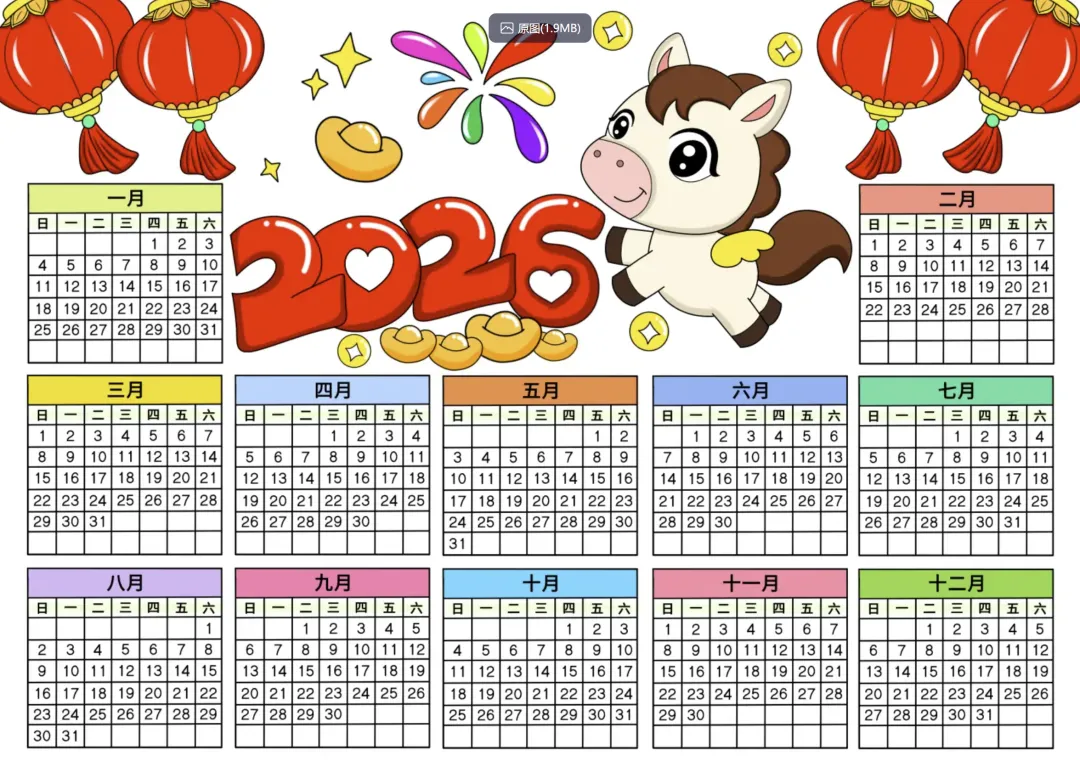 《2026马年日历》高清电子版,可下载打印,模板日历月历年历挂历工作学习目标计划手抄报(链接)