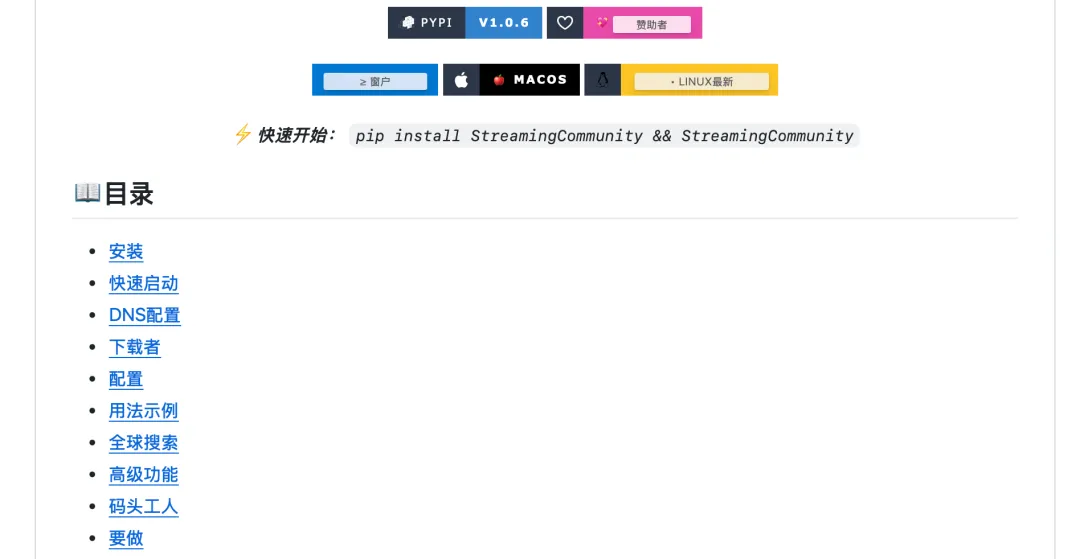 StreamingCommunity提供了多种安装和使用方式,最简单的是直接通过PyPI安装。