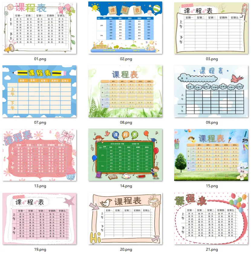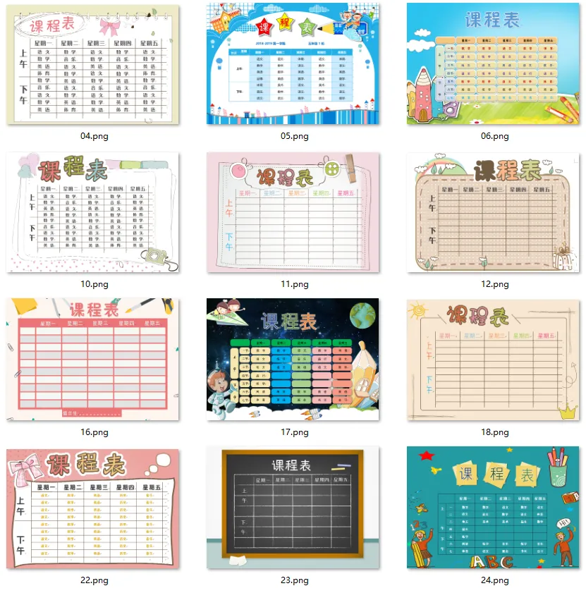 开学必备:100多套《课程表》精美模板(网盘打包下载)
