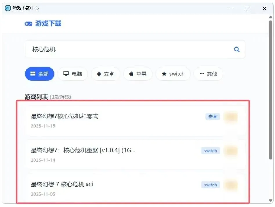 下方是平台分类标签:全部、电脑、安卓、苹果、Switch、其他,方便你按设备筛选。
