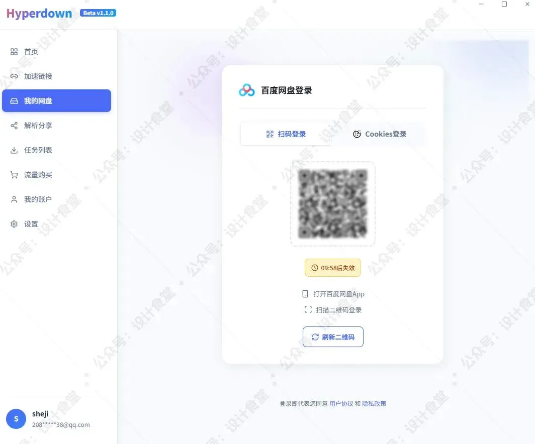 打开【我的网盘】界面,先登录一下自己度盘的账号,可以手机扫码登录,也可以自己获取cookie登录。