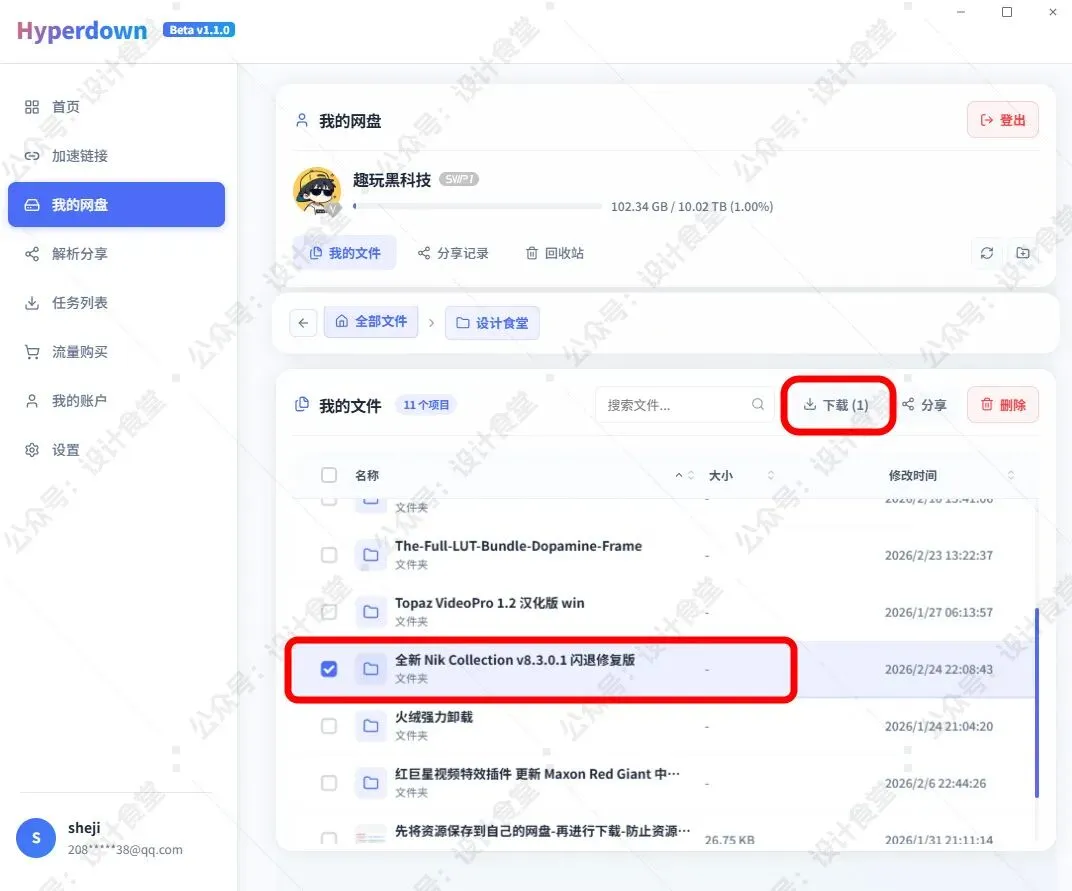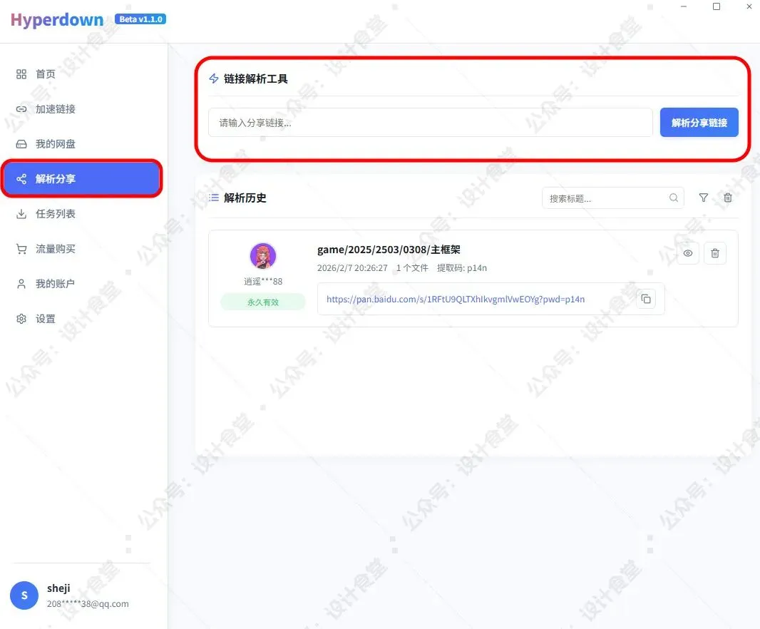 在软件的【解析分享】界面,粘贴链接,点击解析。解析成功后,勾选资源点击下载即可。