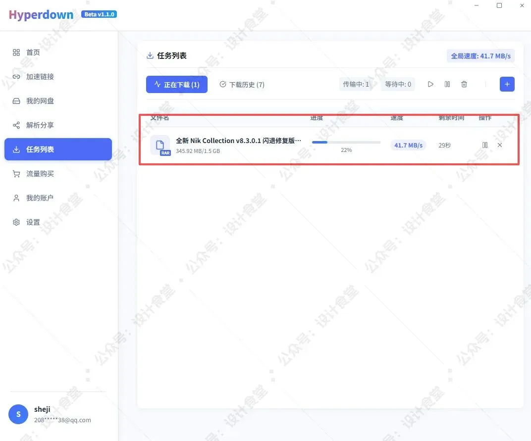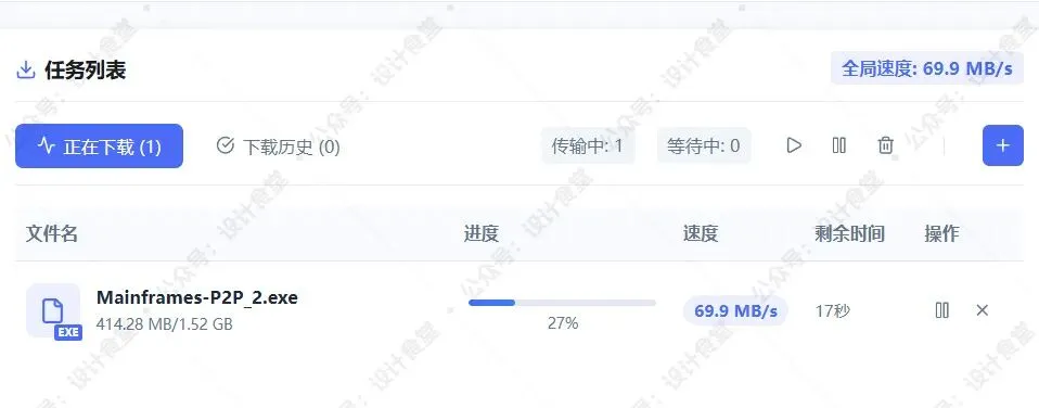 在任务列表中,你可以实时看到下载速度和进度,说实话,全局都是40-50MB/S,快的我截屏都差点截不住。