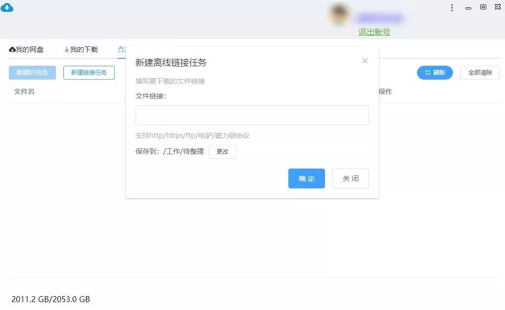 此外,小白发现还有一个离线下载,这里支持http/https/ftp/电驴/磁力链 五种协议,不过它是以先保存到网盘重再下载的形式