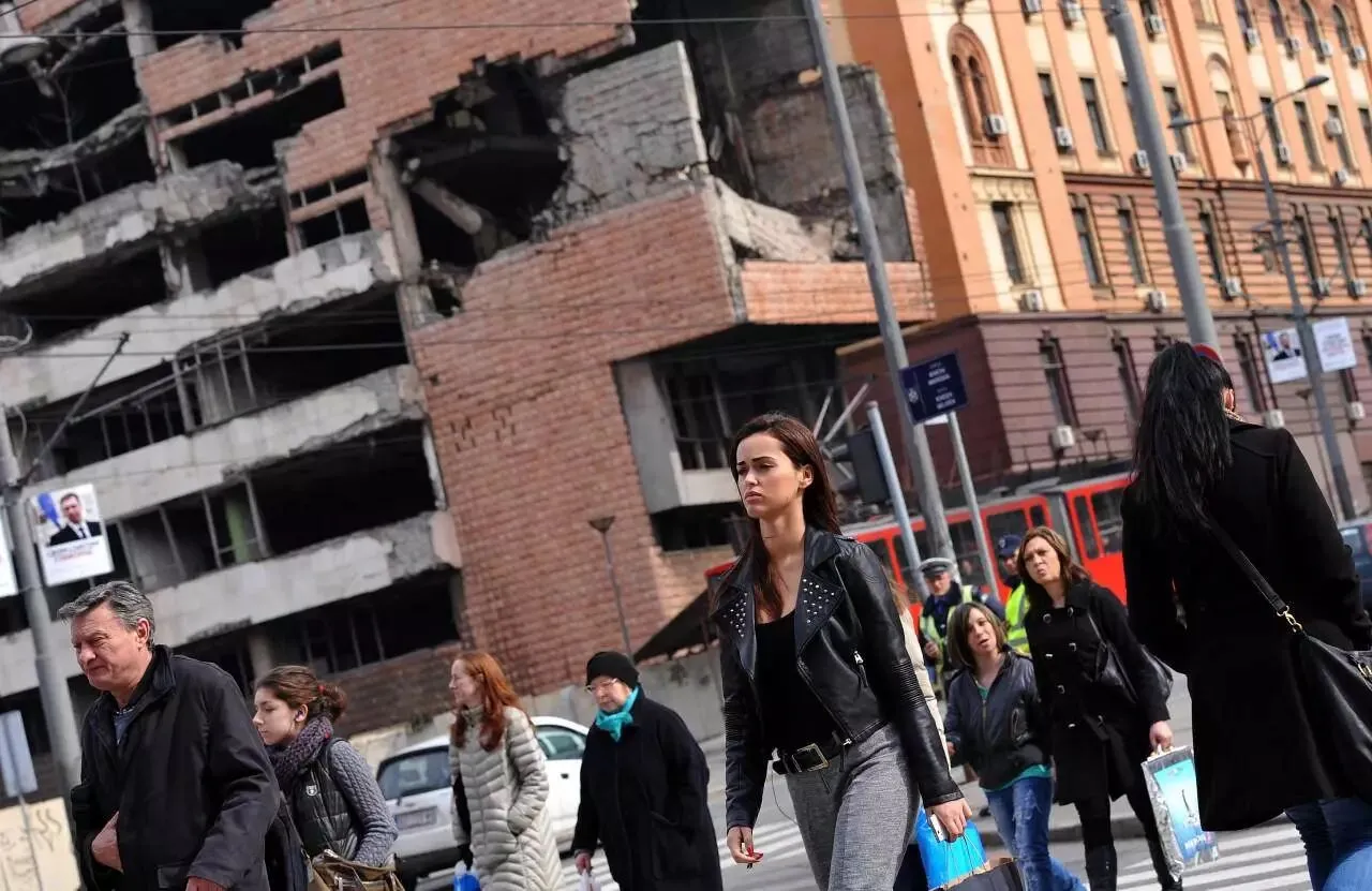 贝尔格莱德街头建筑仍然有明显的战争印记