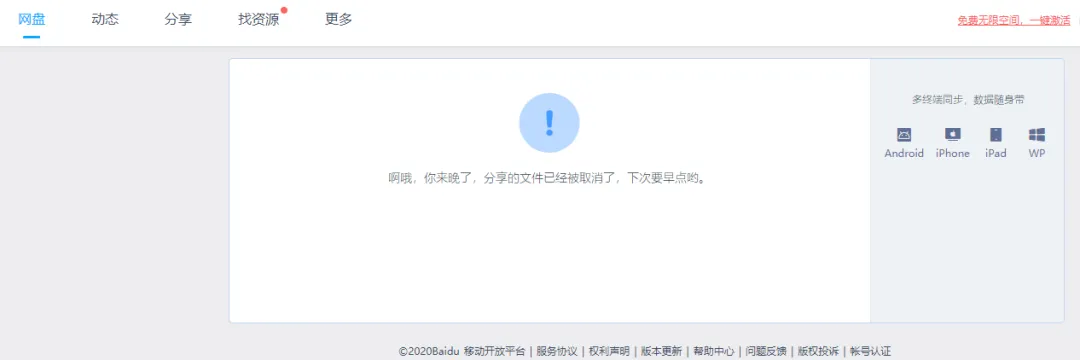 第一个问题问的最多,一般来说我们把链接复制到浏览器中去就能打开了。但是偶尔会遇到百度抽风,显示分享已取消的问题。