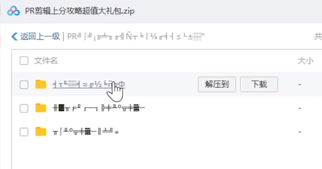 应该是右击素材,点击下载。等网盘完全下载好素材,再解压即可。