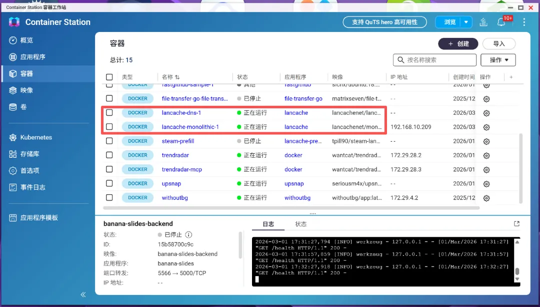 这里我以家里的威联通Qu805为例,为大家展示Lancache的docker部署过程,操作步骤非常简单,其他品牌的软路由或者NAS也能轻松搞定。