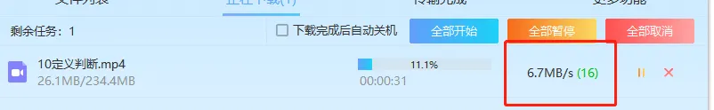 上面说的是有流量或是WiFi情况下可以在线播放的同学可以用这个方法实现倍速播放,提高学习效率。这个软件还可以实现下载提速,大家可以看下下载网速对比,要是大家的网速给力的话,速度会更快。