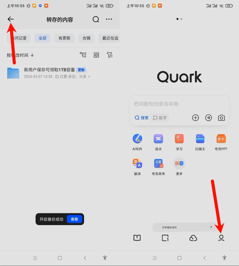 夸克网盘是大家日常文件存储、资料分享的常用网盘,最近不少小伙伴都在反馈网盘容量不够用、下载限速的问题。今天就给大家分享实用攻略 ——夸克网盘免费领取 1TB 容量 + 不限速下载方法,全程在官方客户端操作,步骤简单、轻松上手,直接解决容量与限速难题!