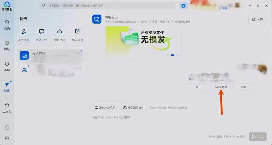 在发送记录中找到【下载到本地】按钮,点击即可实现不限速下载。