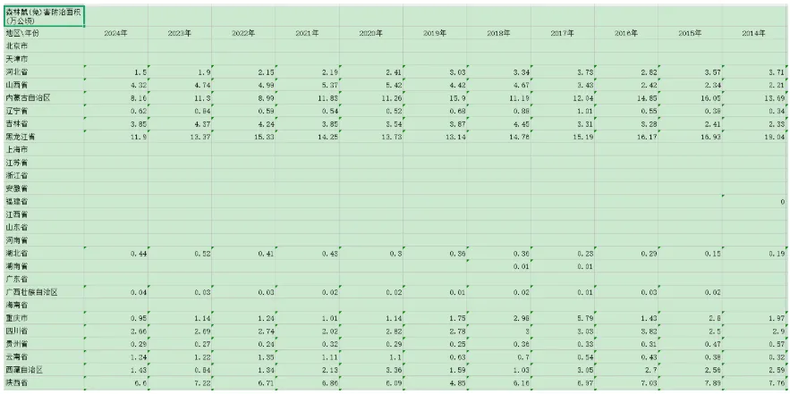 中国森林鼠(兔)害防治面积数据集