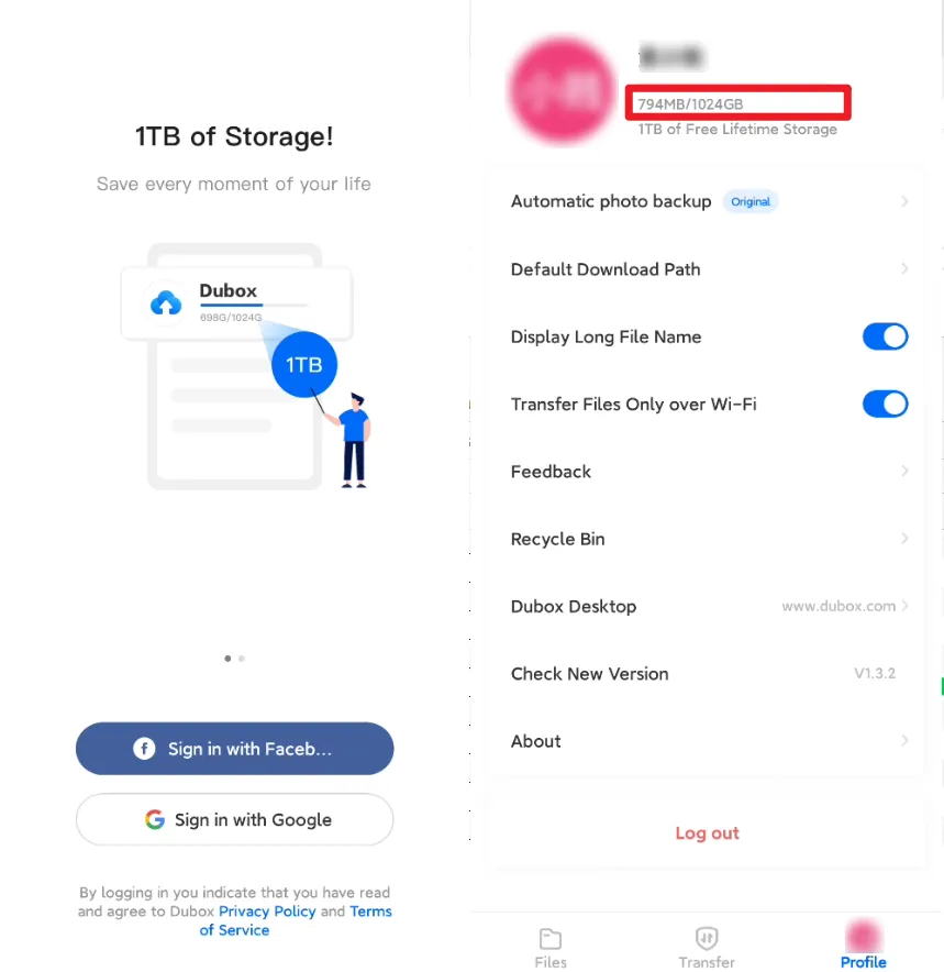 下载Dubox APP后,支持Facebook和Google账号登录,越过一座又一座大山
