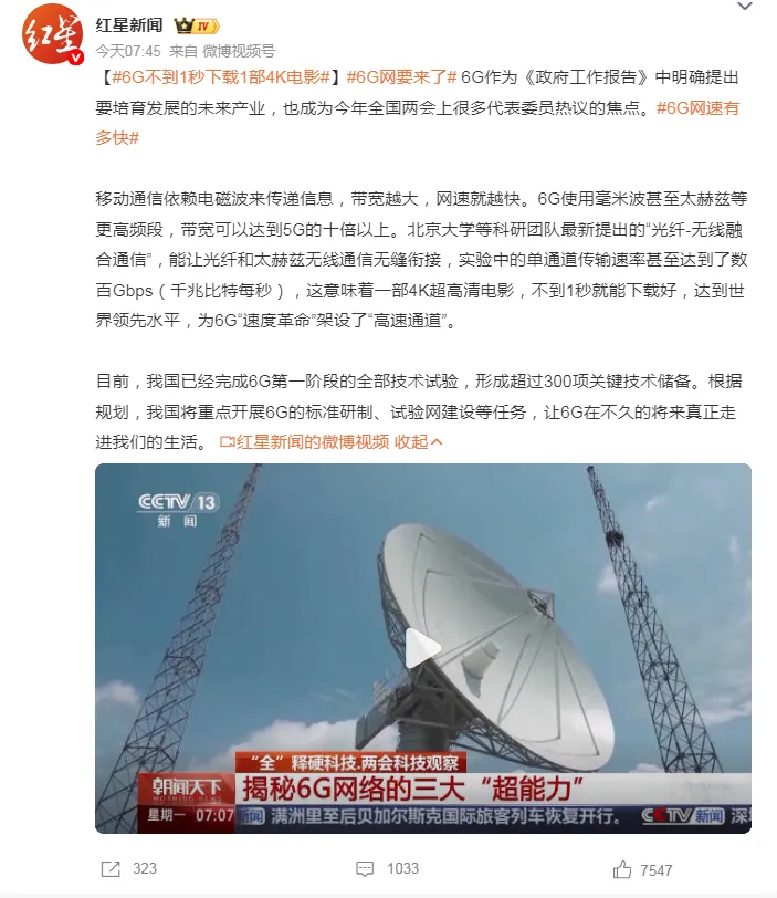 今年全国两会,6G成为当之无愧的科技热词,被明确写入《政府工作报告》,列为重点培育的未来产业,成为代表委员热议焦点。
