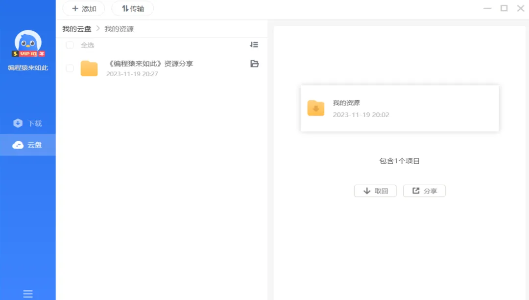 支持网盘功能,可以下载网盘中转存的文件: