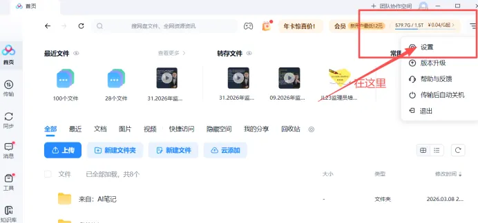 打开百度网盘,选择设置