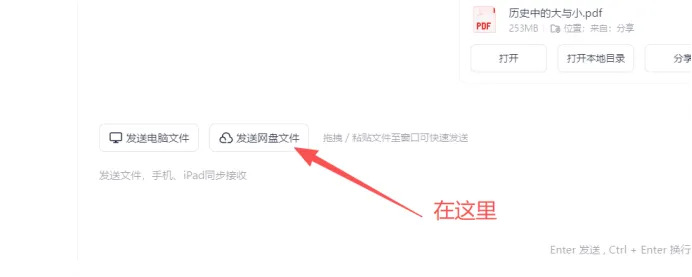 在下方找到发送网盘文件按钮点击