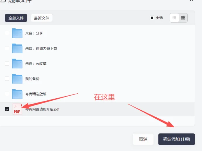 选择要下载的文件,点击确认添加