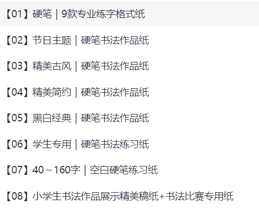 多款精美高清硬笔书法作品纸 网盘打包下载 硬笔|9款专节日主题精美古风|精美简约 |经典学生专用|精美稿纸+书法比赛专用纸