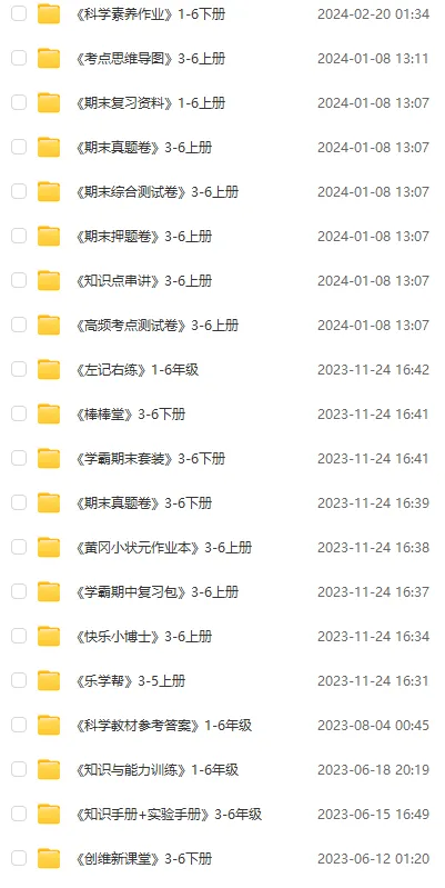 小学科学《预习复习资料》整理汇总(网盘打包下载)1-6年级上下册预习复习必备一二三四五六年级全套2026【夸克】自提