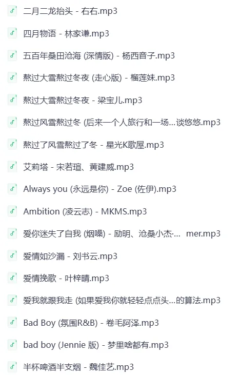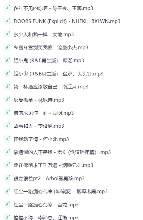 今日夸克网盘更新热搜MP3歌曲225首