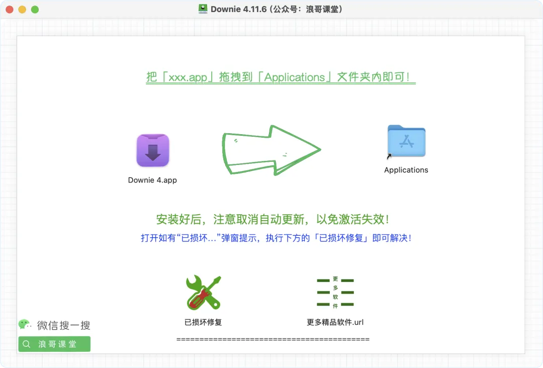 在「浪哥课堂」公众号后台回复:Downie 即可获取网盘下载链接!