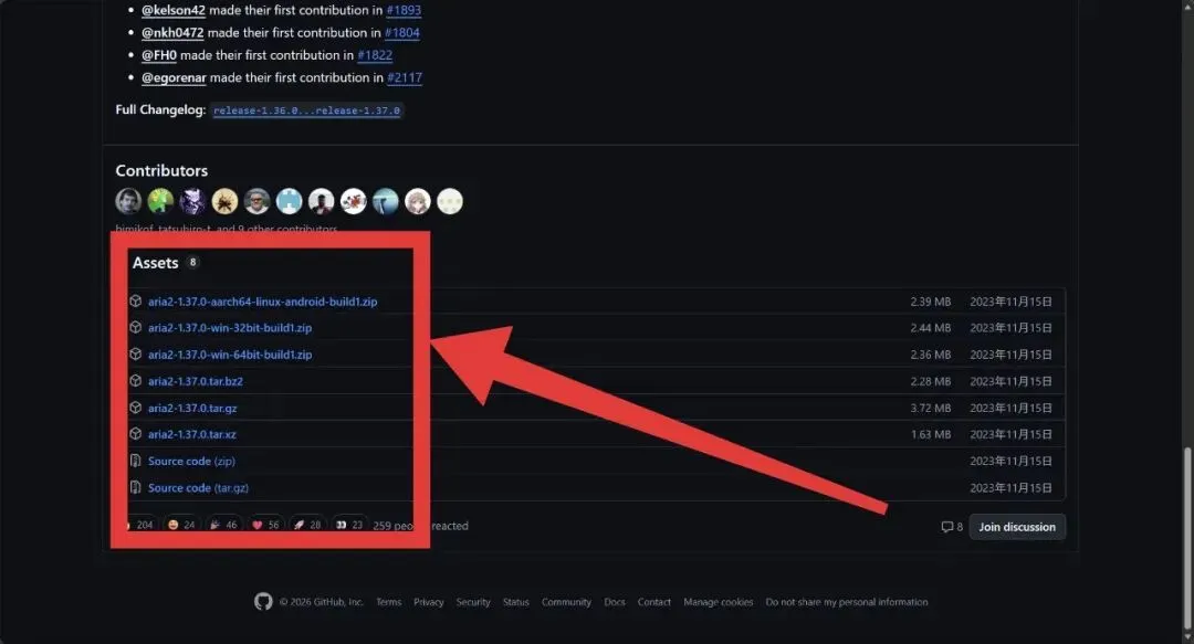 1. 打开GitHub aria2发布页,找到对应系统版本