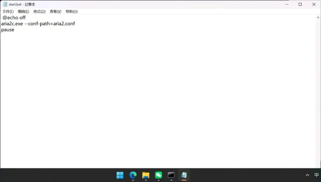 3. win+r,然后输入notepad打开记事本,把 start.bat 拖到记事本里,粘贴以下内容,然后保存。