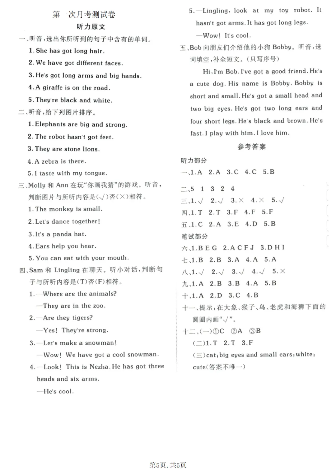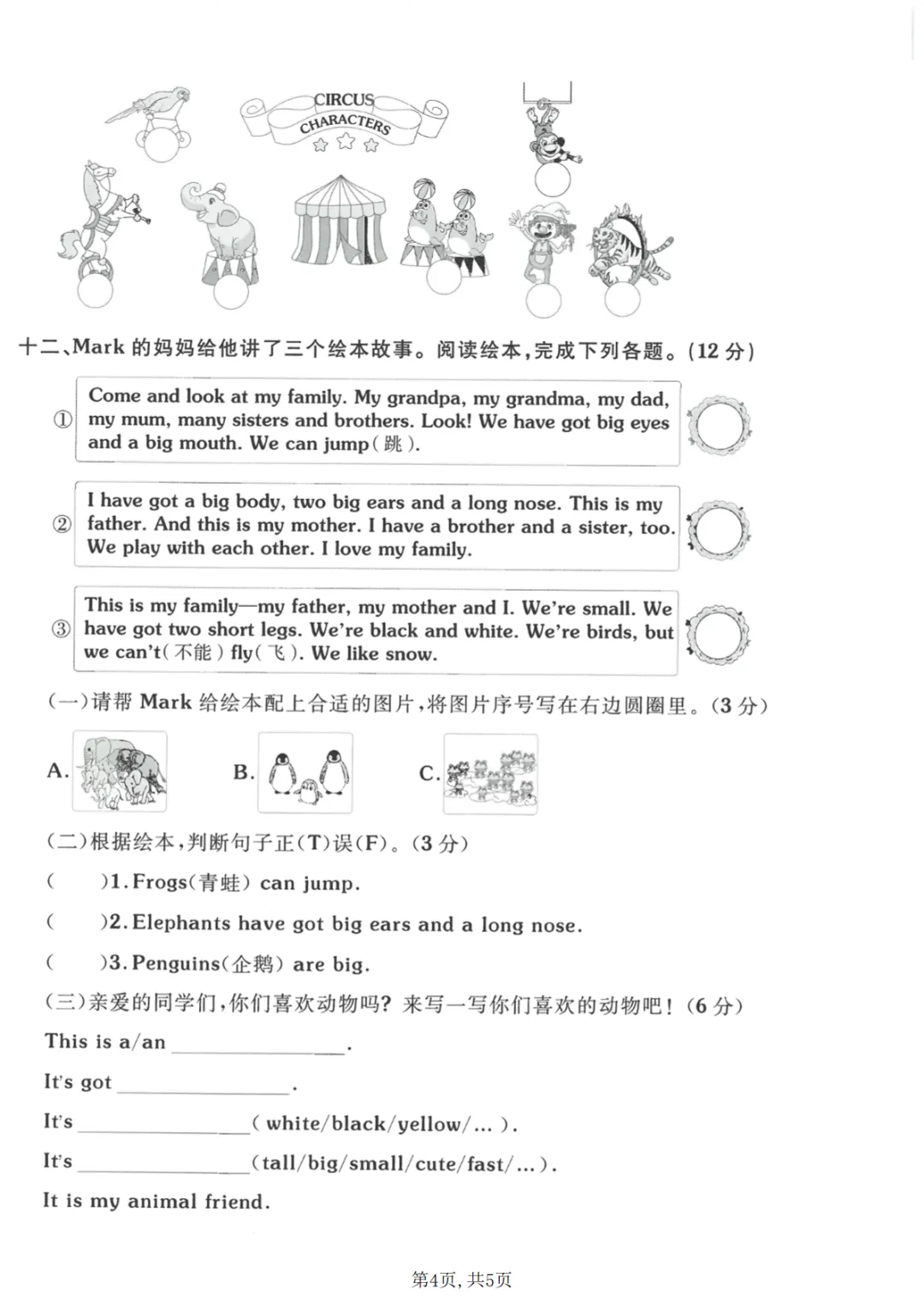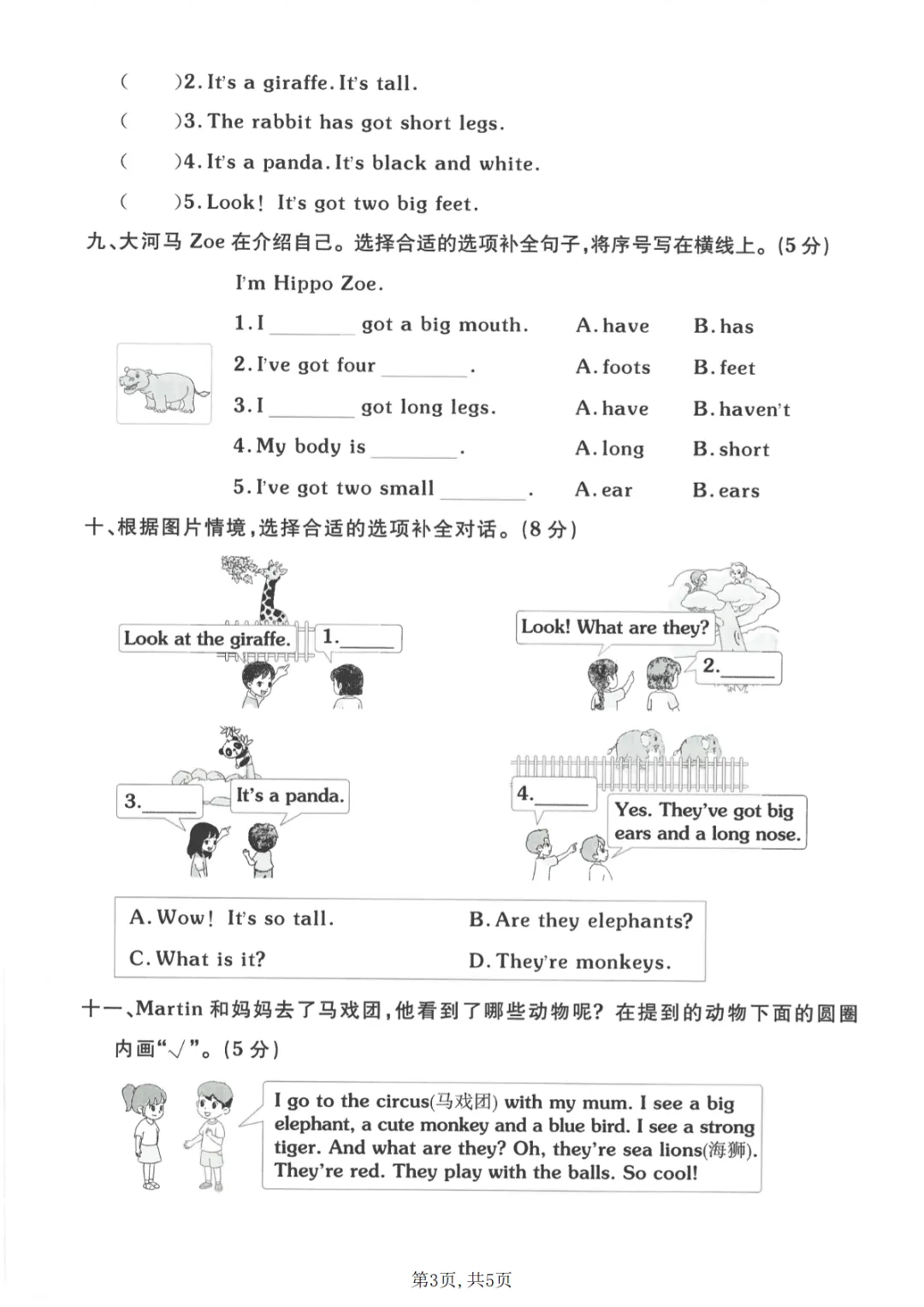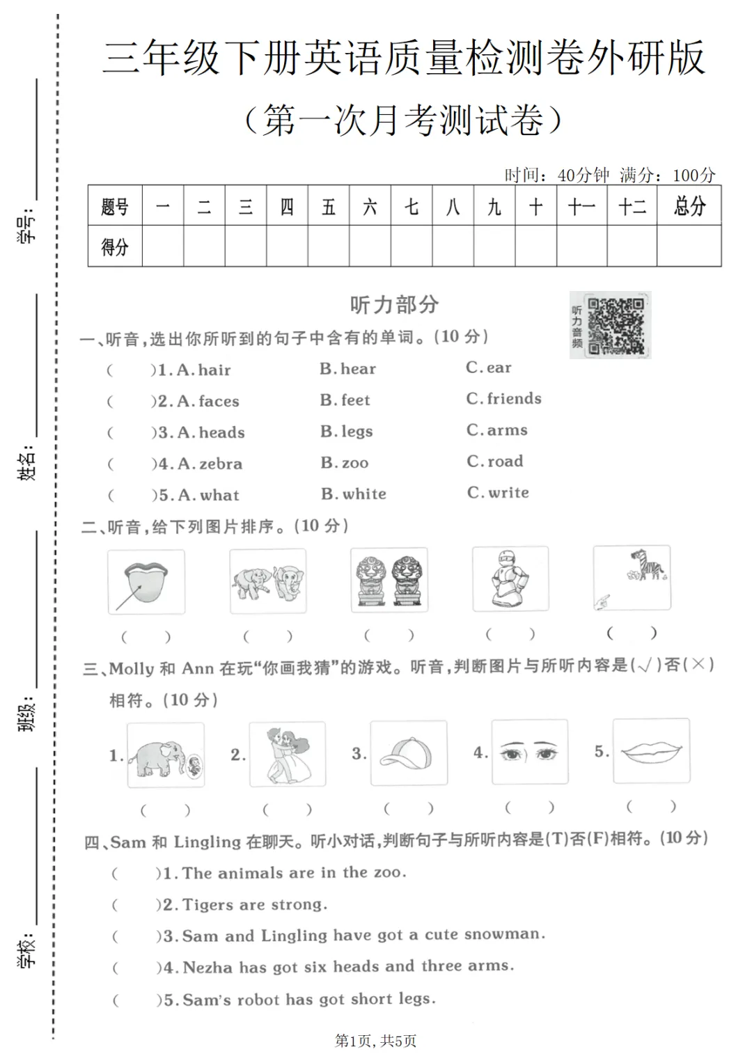 三年级(下)英语 第一次月考质量检测卷《外研版》