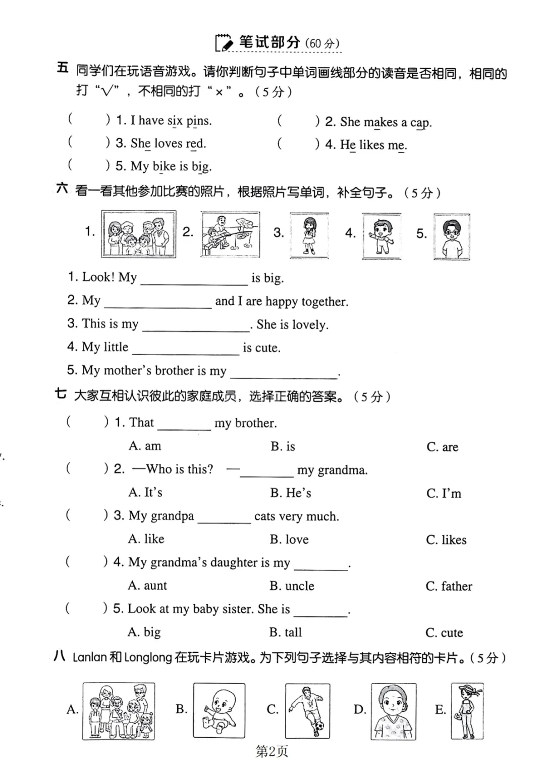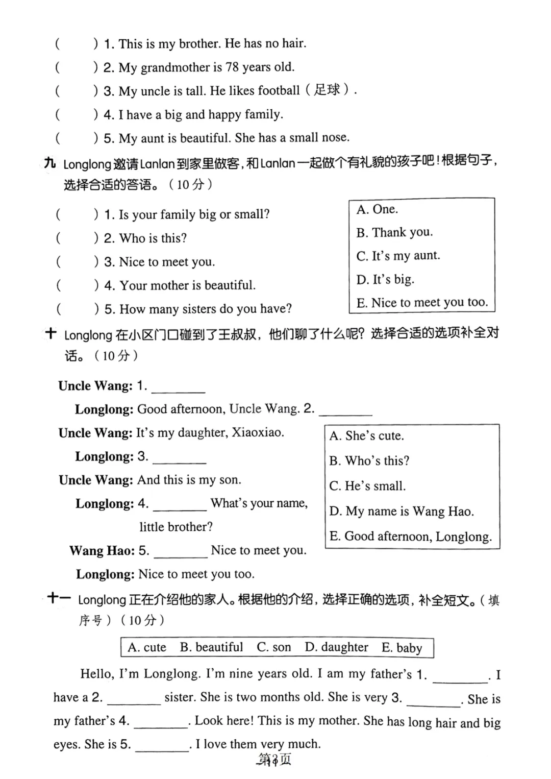 三年级(下)英语 第三单元测试卷2《人教精通版》