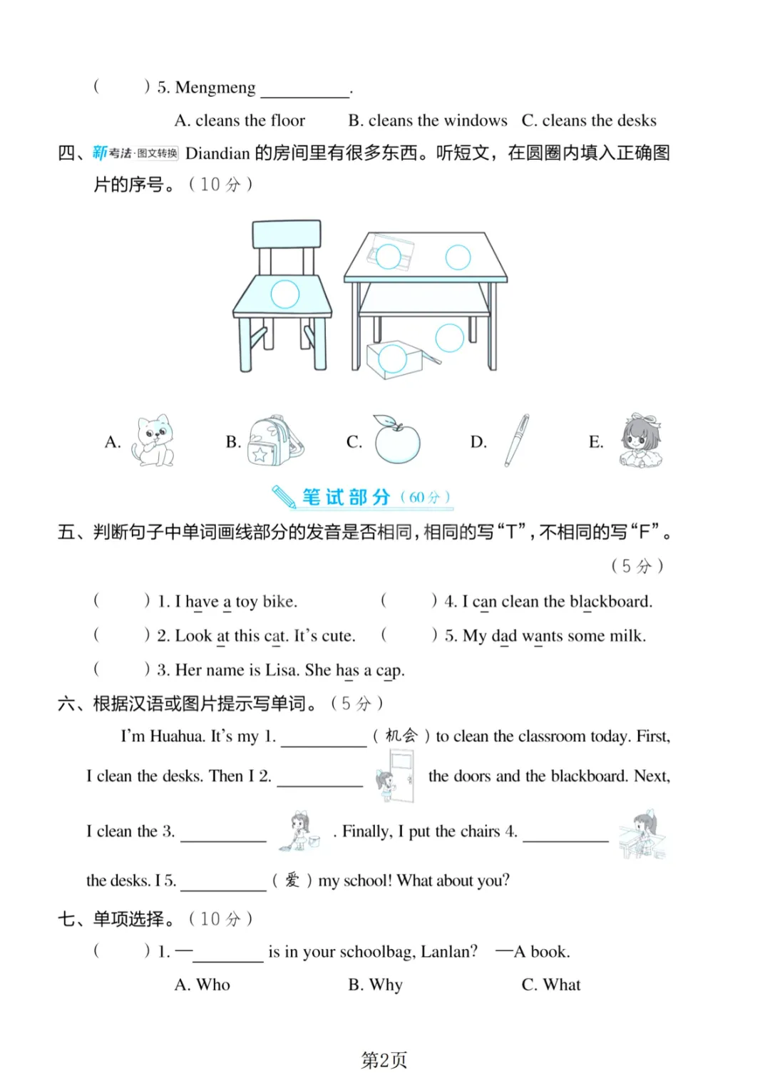 三年级(下)英语 第一单元测试卷1《人教精通版》