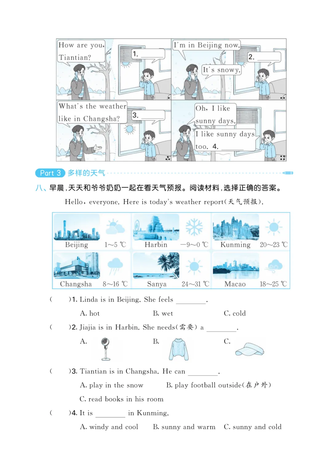 三年级(下)英语 第三单元达标测试卷《湘少版》