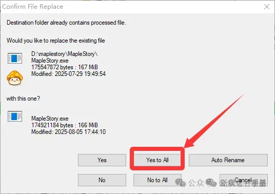 覆盖文件提示,选择【yes to all】,即全部覆盖。