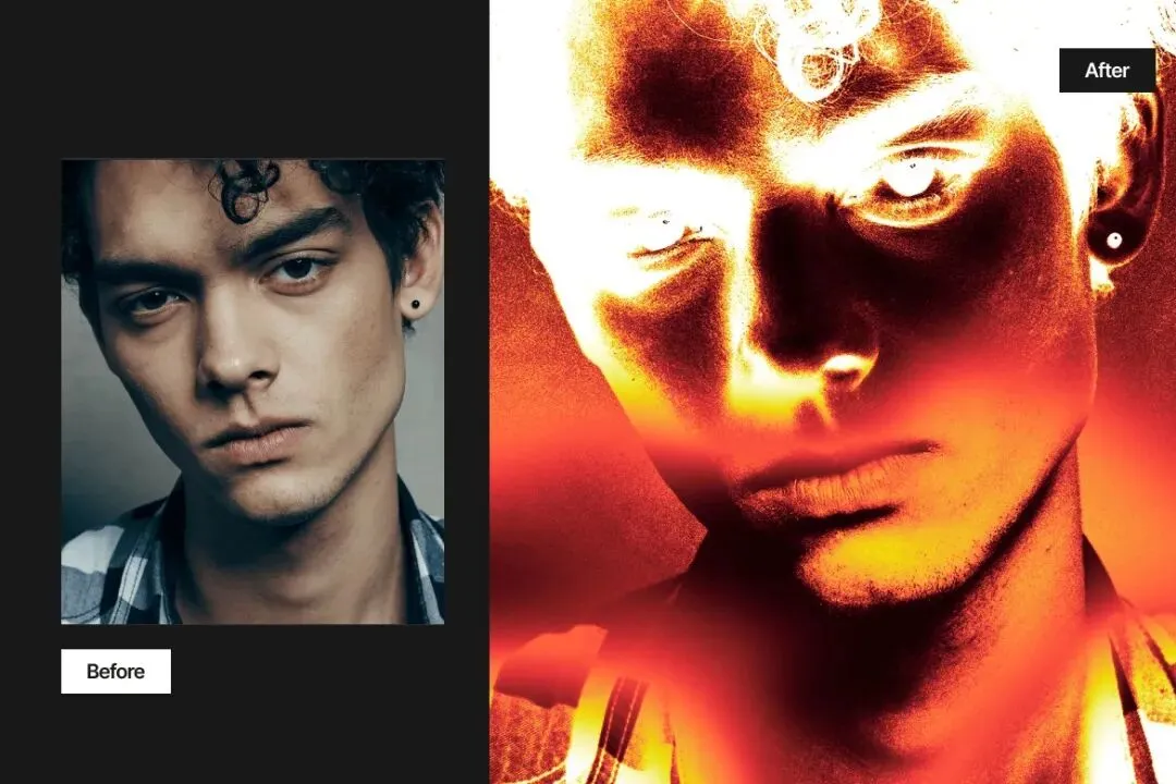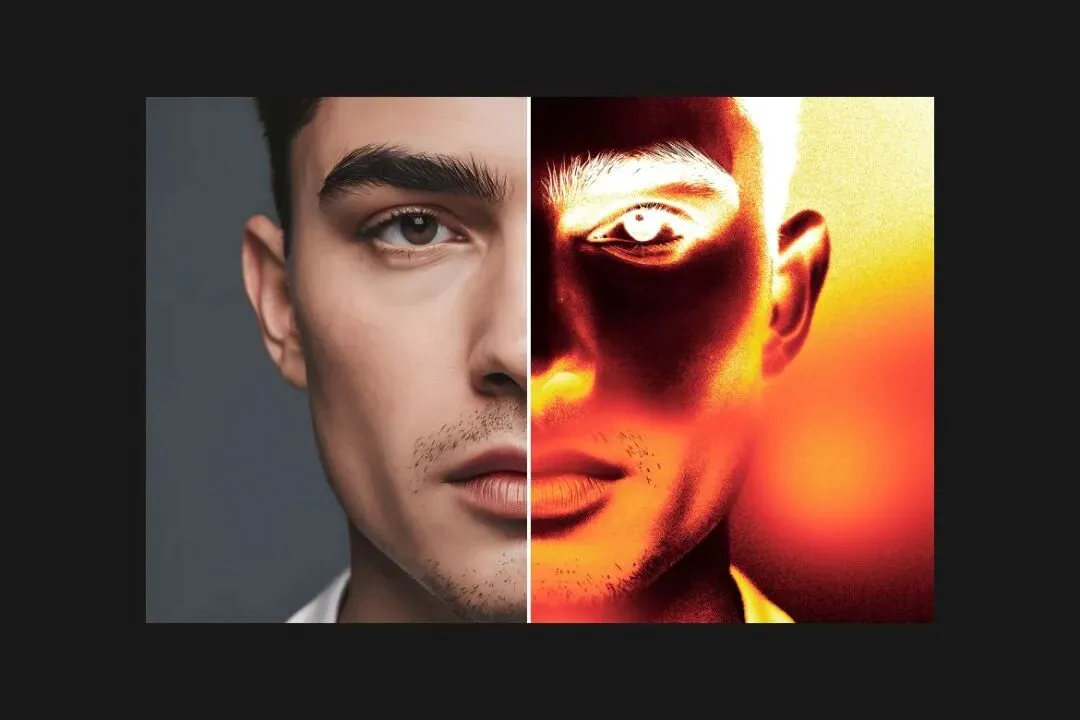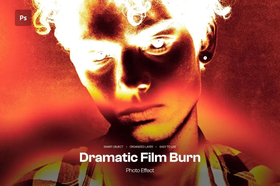 戏剧性胶片烧伤照片效果呈现大胆的模拟美学,包含强烈的光线泄漏、温暖的胶片烧痕和受复古胶片摄影启发的电影色彩扭曲。该效果设计为可完全编辑的PSD,配备智能对象,将普通图像转化为具有原始能量和情感深度的引人注目视觉效果。非常适合添加动态高光、发光边缘和模拟真实胶片损伤的有机瑕疵。非常适合需要戏剧性、怀旧且具艺术感的视觉冲击力且具强烈电影氛围的创意项目。