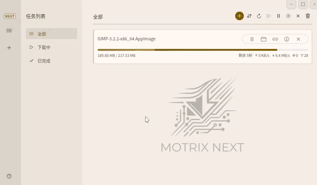 下载器的页面十分简单,没有多余的信息,就是一目了然的任务列表,我们正在下载的项目就会在这个页面所呈现。