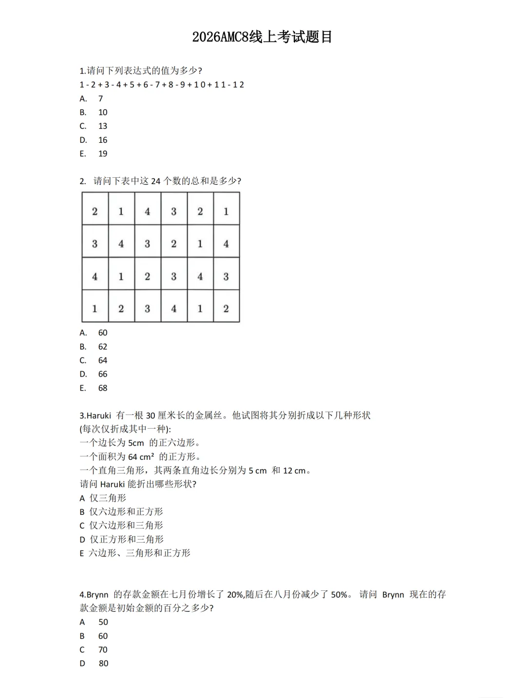 AMC8参赛对象:8年级及以下,考试当日不超过14.5岁