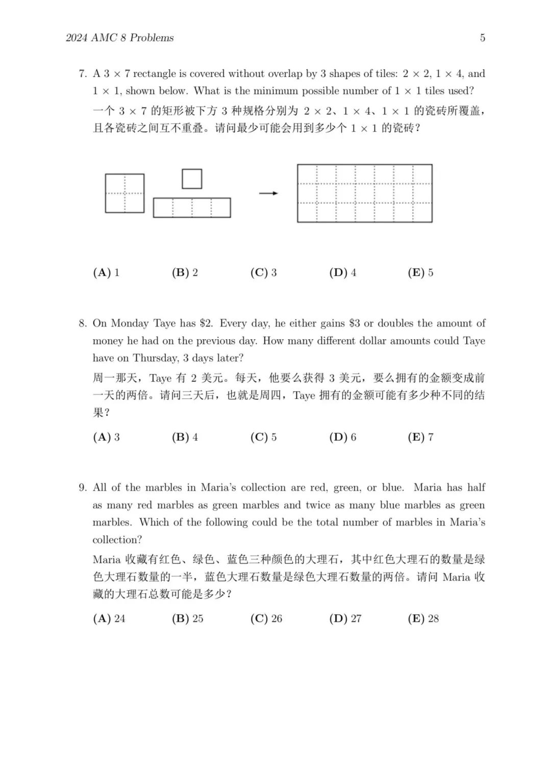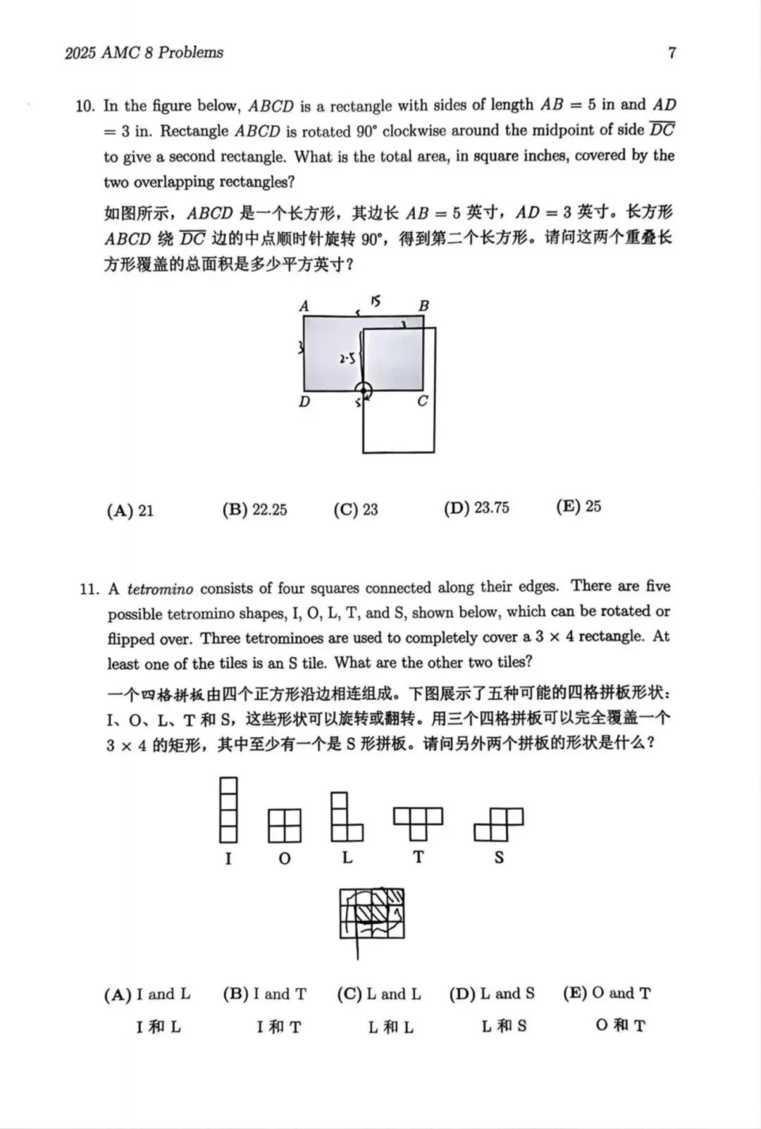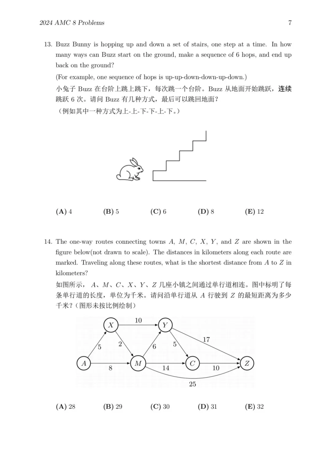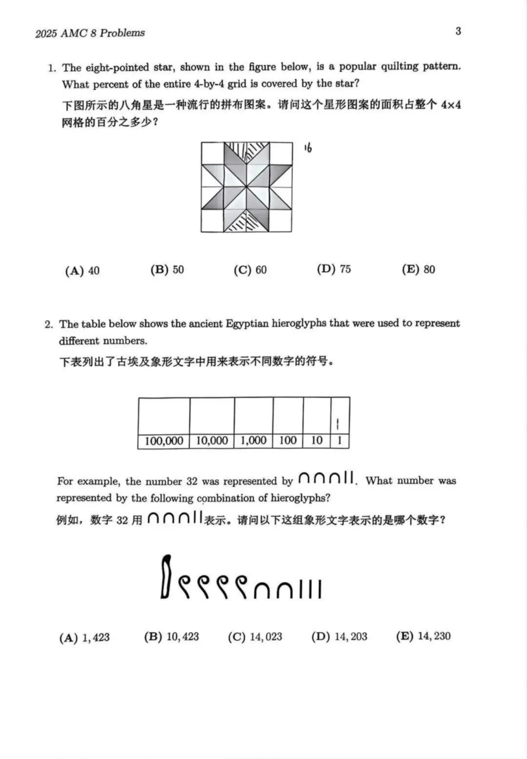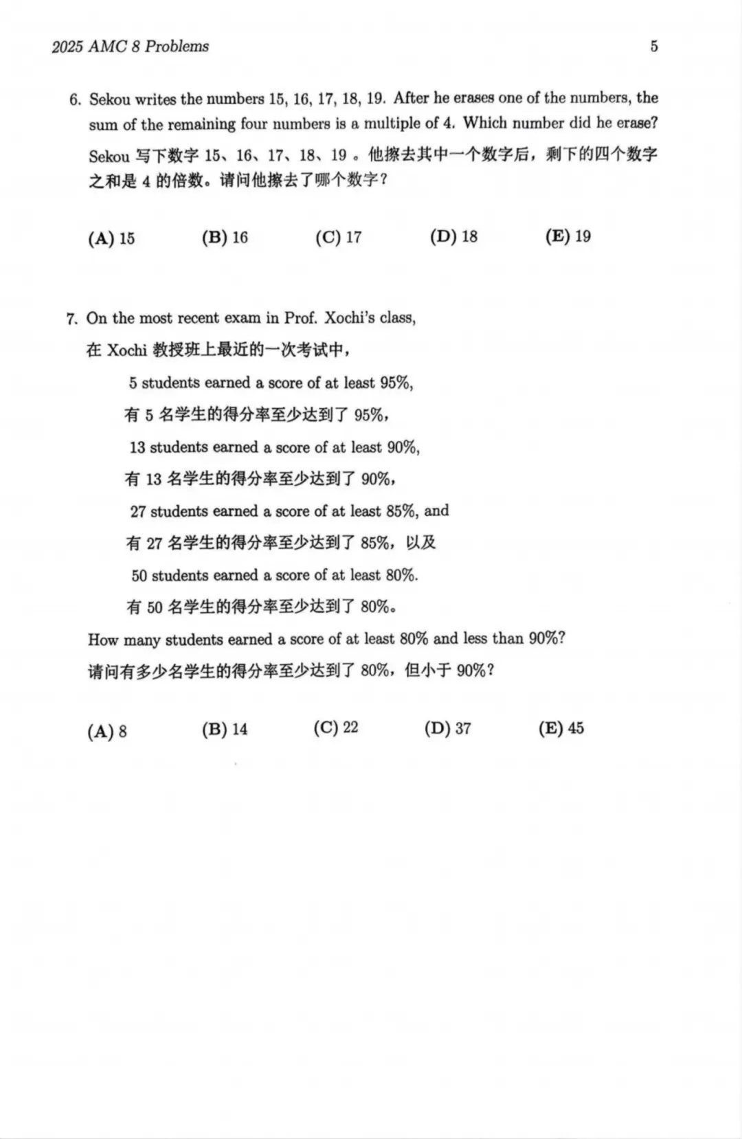 AMC8考试形式:25道单项选择题,中英双语试卷
